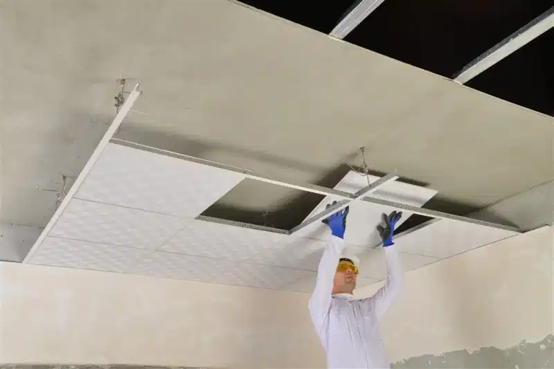 Asma tavan panelleri, sistemde oluşturulan 60x60 boşluklara oturtularak, asma tavan montajı tamamlanır.