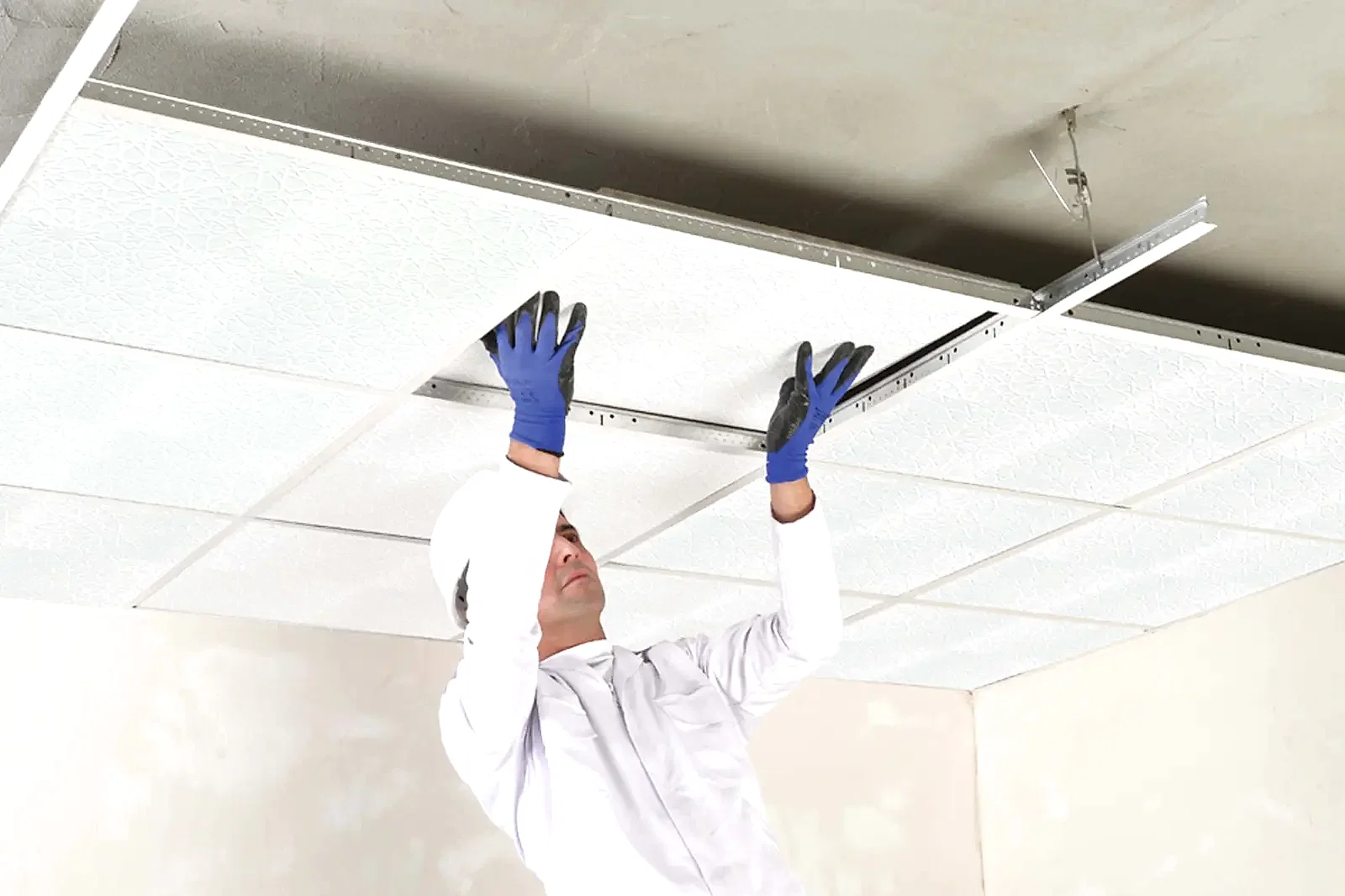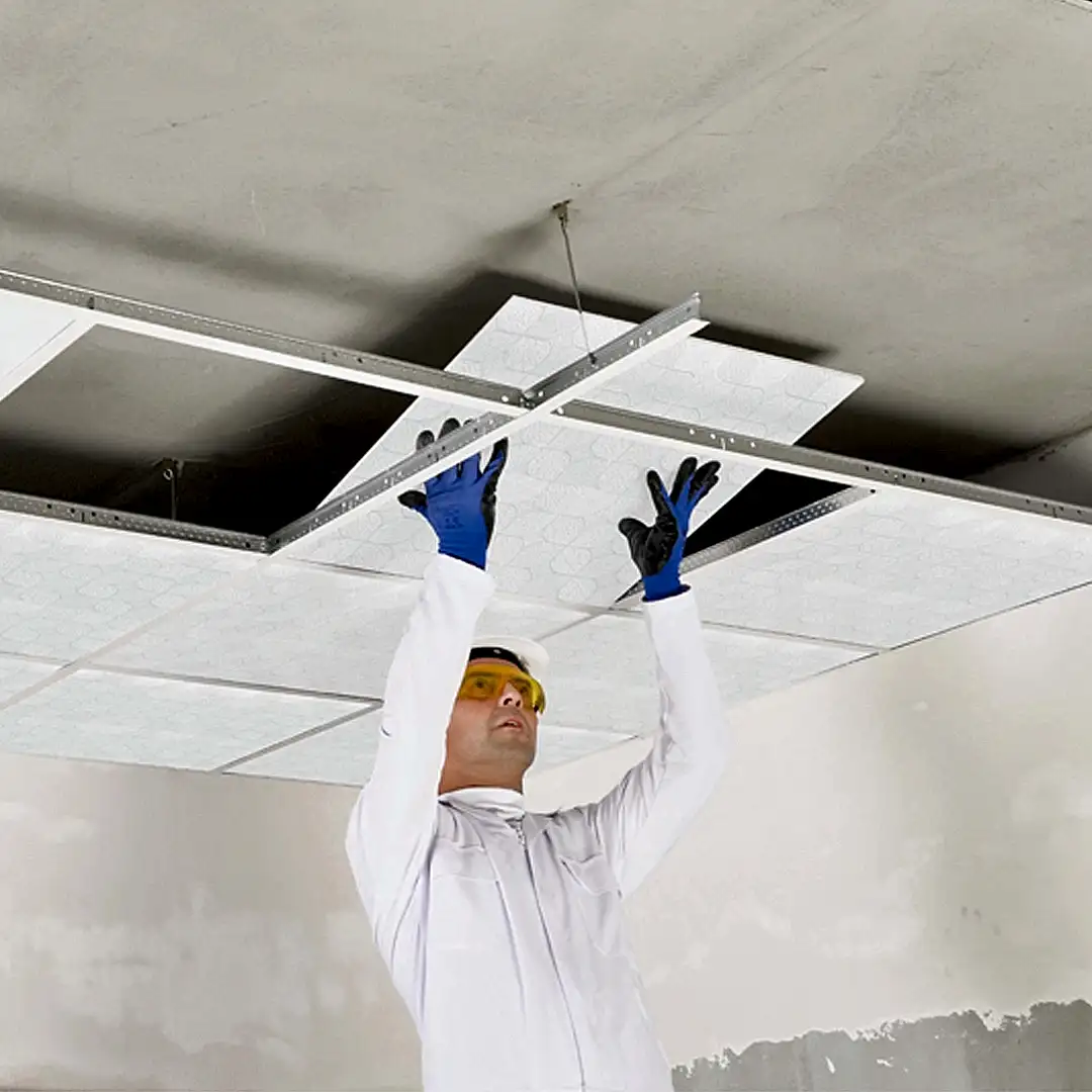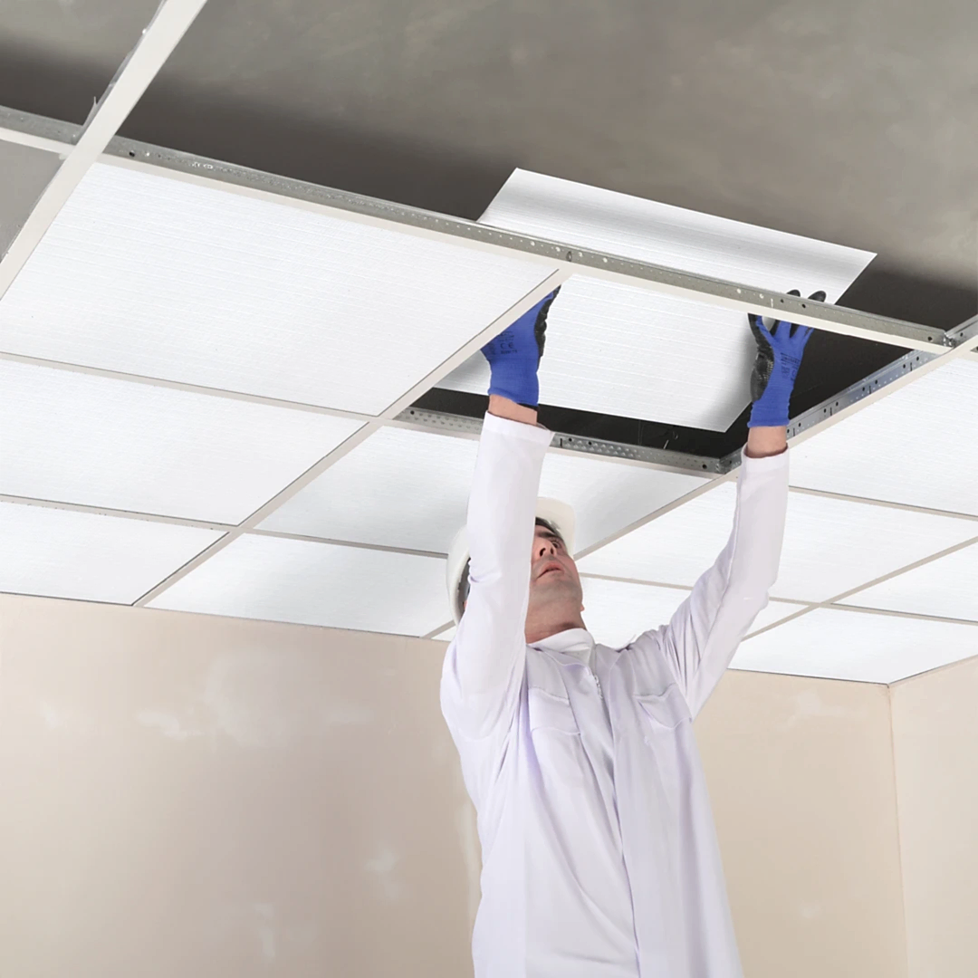 Asma tavan panelleri, sistemde oluşturulan 60x60 boşluklara oturtularak, asma tavan montajı tamamlanır.