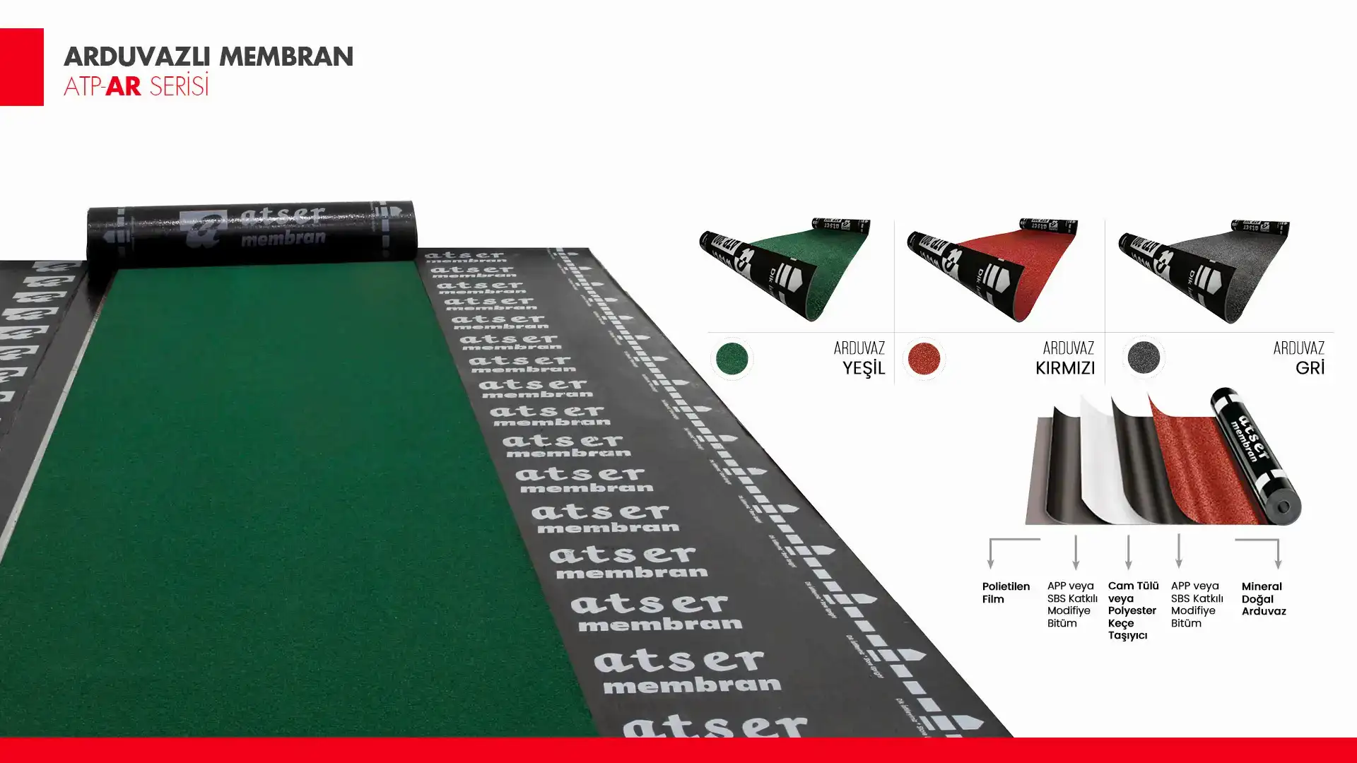 Membranın görünür yüzeyine, çeşitli renklerde arduvaz granüllerden oluşan koruyucu bir tabaka kaplanması ile oluşur. Bu mineral kalkan UV ışınlarının neden olduğu yaşlanmalara karşı membranı korur.